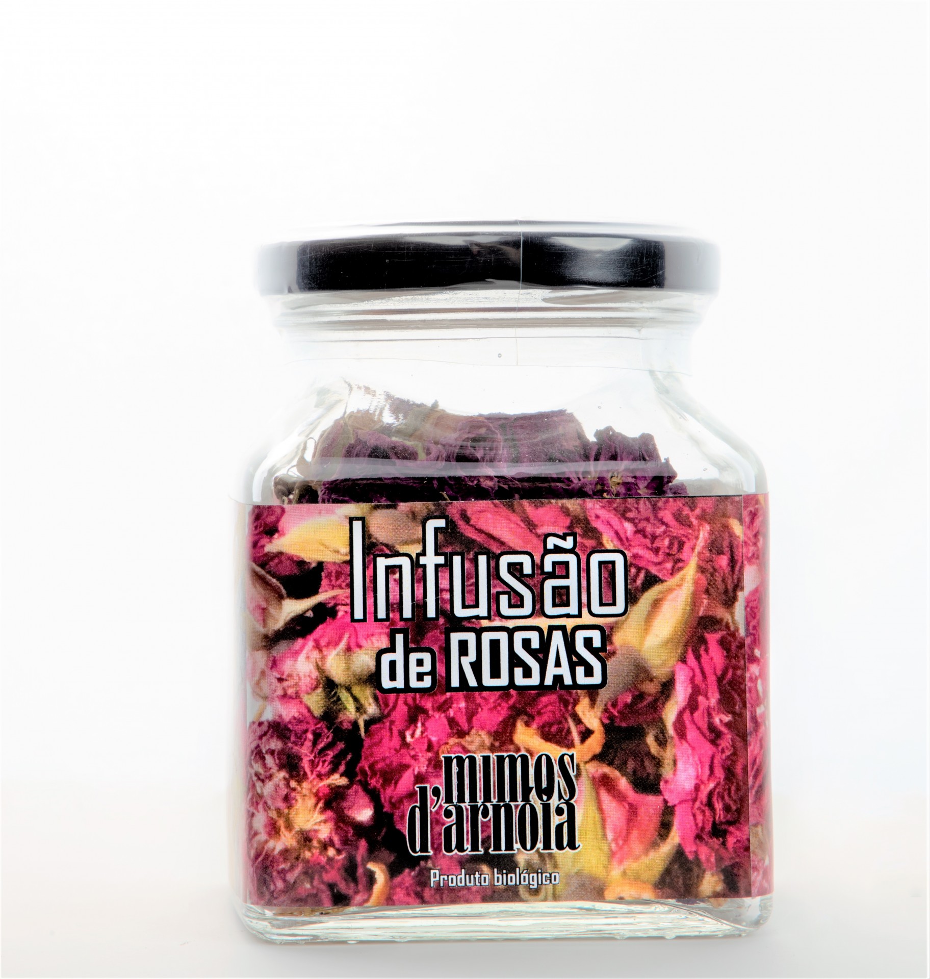 Infusão de Rosas - selecção Premium 7,00 € Desconto de %. IVA incluído. Partilhar O produto encontra-se sem stock. 20 g | 0.7 oz Infusão de Rosas é uma selecção premium de Rosas Mimos colhida delicaamente na quinta Mimos D'Arnoia. Ingredientes: 100% Rosas (rosas mimos) premium biológicas Flores desidratadas para infusões e fins culinários. 100% biológico e certificado | Feito em Portugal | handmade | fair trade | agricultura sustentável