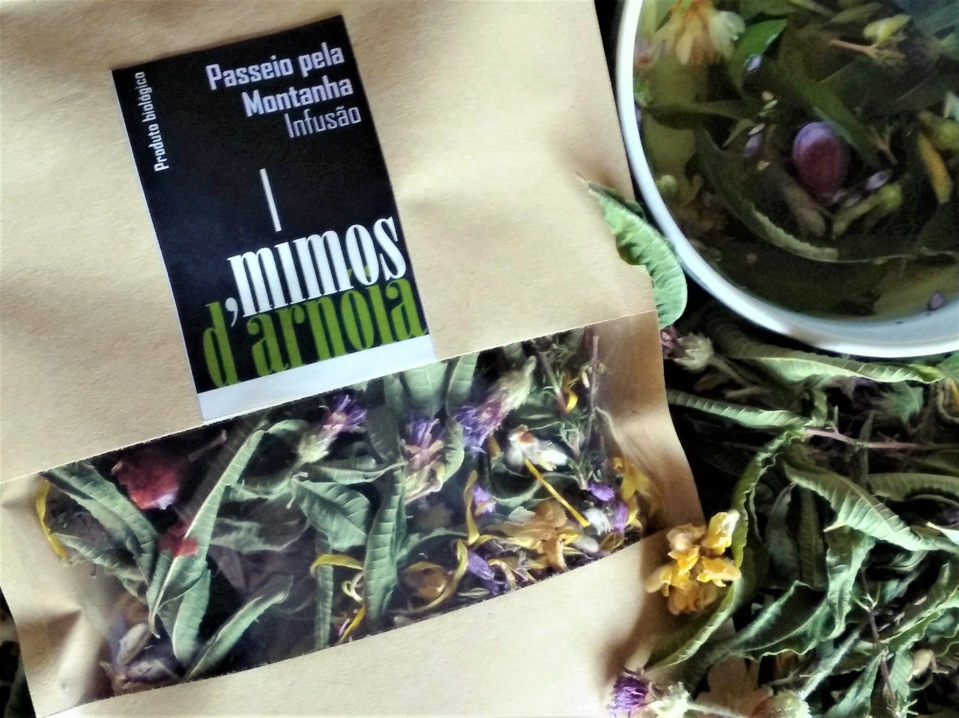 Infusão 100% biológica com flores e plantas da natureza directamente para o seu chá. Aqueça e alimente o seu corpo com o melhor que um passeio pela quinta Mimos nos dá.